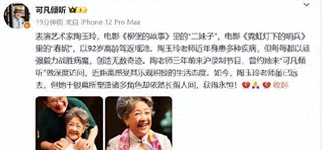 演艺圈同仁对她的离去深表惋惜。冯远征、曹可凡等人纷纷通过社交媒体表达哀思。大家悼念的不仅是一位造诣深厚的演员,更是一位面对磨难不屈不挠的长者。曹可凡曾感慨,陶老师身上那股顽强的生命力令人动容。哪怕身患重疾,她依然心系表演事业,心系观众。