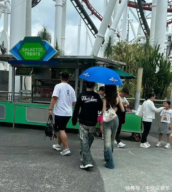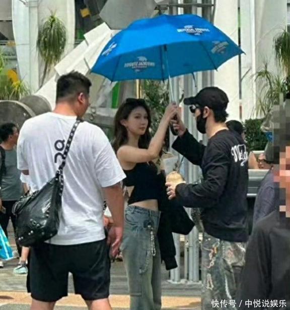 照片里两人还共撑着一把伞,也说不好是谁把伞递给谁的,可能就是拍照角度的问题,显得是俩人一起撑着。
